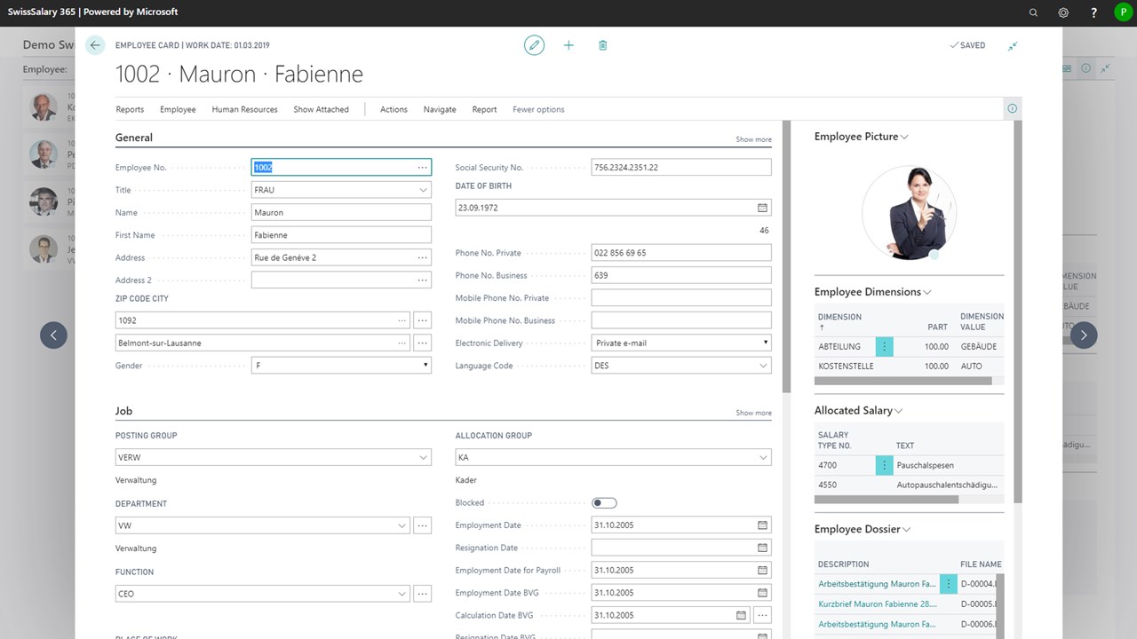 - SwissSalary 365 est un module de gestion des salaires et de la paie conforme aux normes suisses et intégré à la solution ERP Microsoft Dynamics 365 Business Central